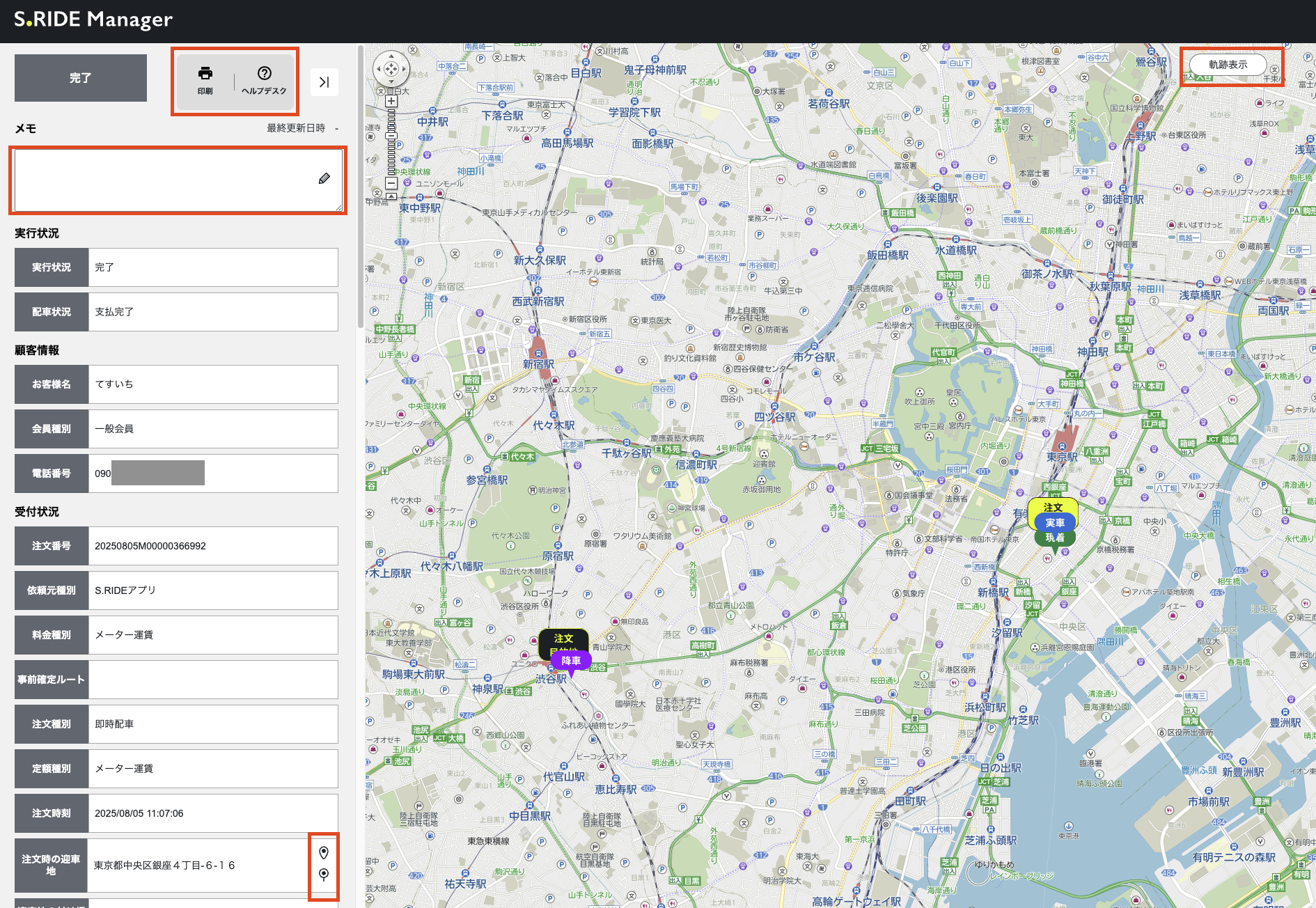 軌跡表示: この注文の経路を確認できます。 | |